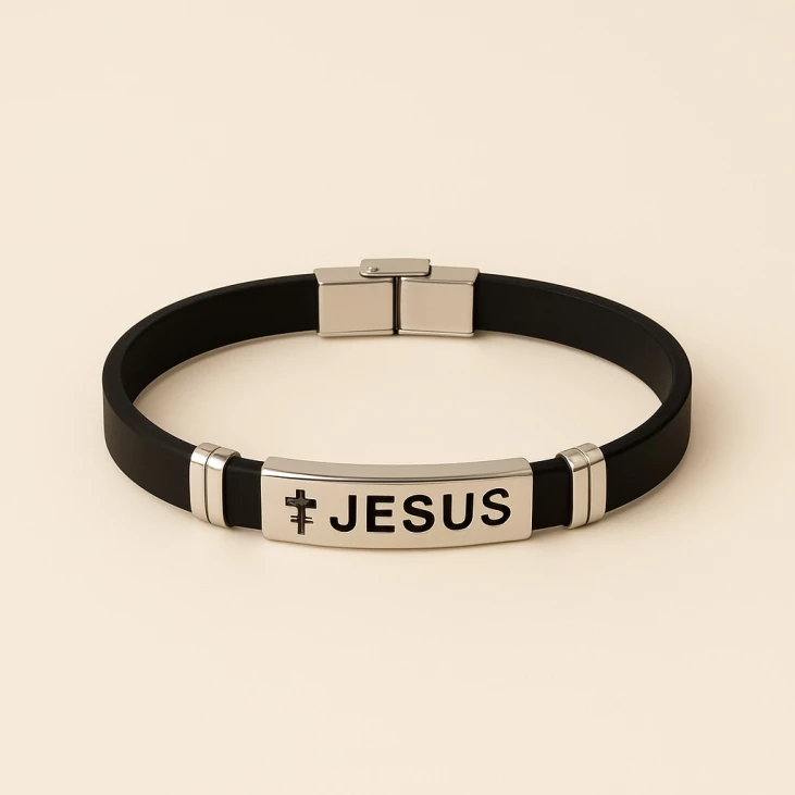 Le bracelet masculin en silicone noir avec gravure "JESUS" est bien plus qu’un simple accessoire : c’est un véritable symbole de foi et d’élégance. Conçu pour les hommes modernes, il allie esthétique, confort et spiritualité dans un design audacieux.