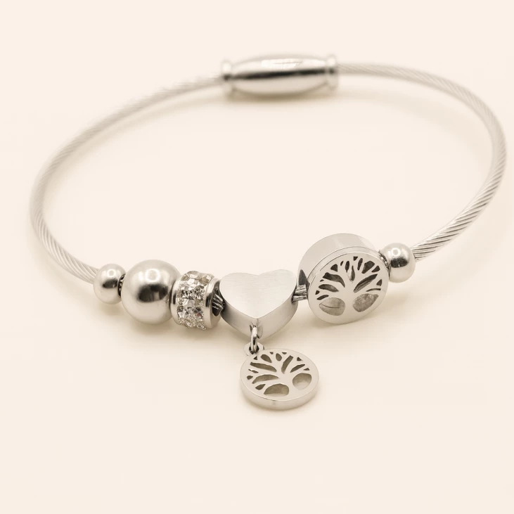 Bracelet ovale plaqué or, orné d’une délicate étoile blanche nacrée au centre. Élégant, raffiné, il sublime le poignet avec finesse. Finition brillante et confort assuré pour un bijou intemporel.