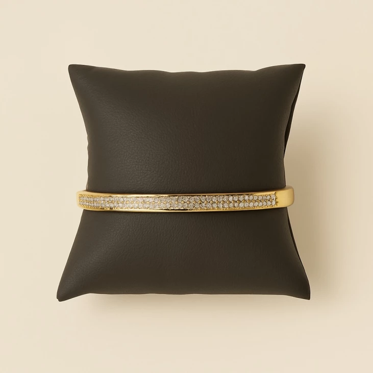 Elegant gold-plated cuff bracelet featuring a refined oval silhouette. Easy clip clasp with a polished, sophisticated finish. A statement piece that combines chic style with lasting quality, crafted in Brazil.