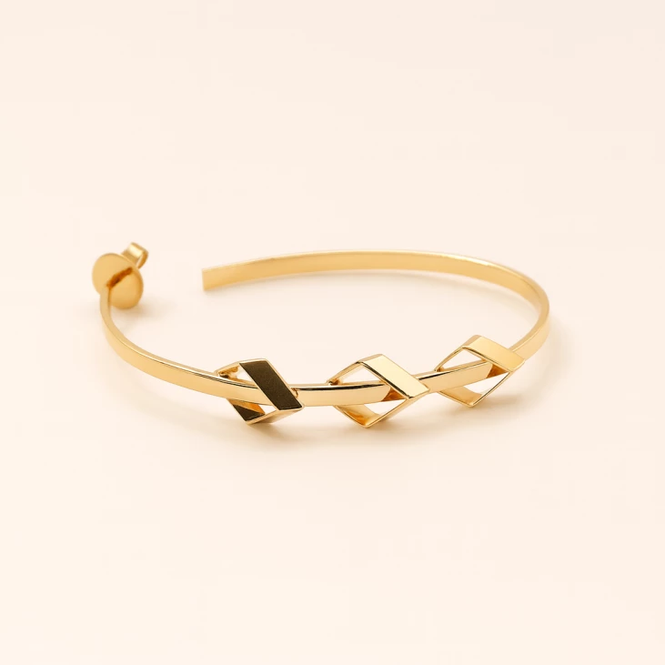 Elegant gold-plated cuff bracelet featuring a refined oval silhouette. Easy clip clasp with a polished, sophisticated finish. A statement piece that combines chic style with lasting quality, crafted in Brazil.