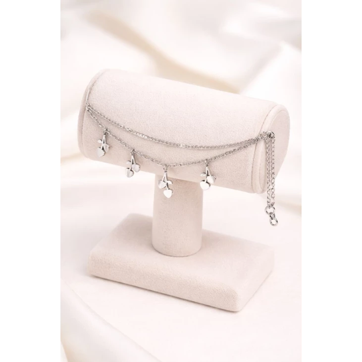 This gold-toned bracelet strikes a perfect balance between two chains: an elegant horse-link chain and a luminous twisted chain. At its center, a heart-shaped carabiner pendant adds a modern, distinctive touch. Adjustable and lightweight, it’s designed for effortless everyday wear.
