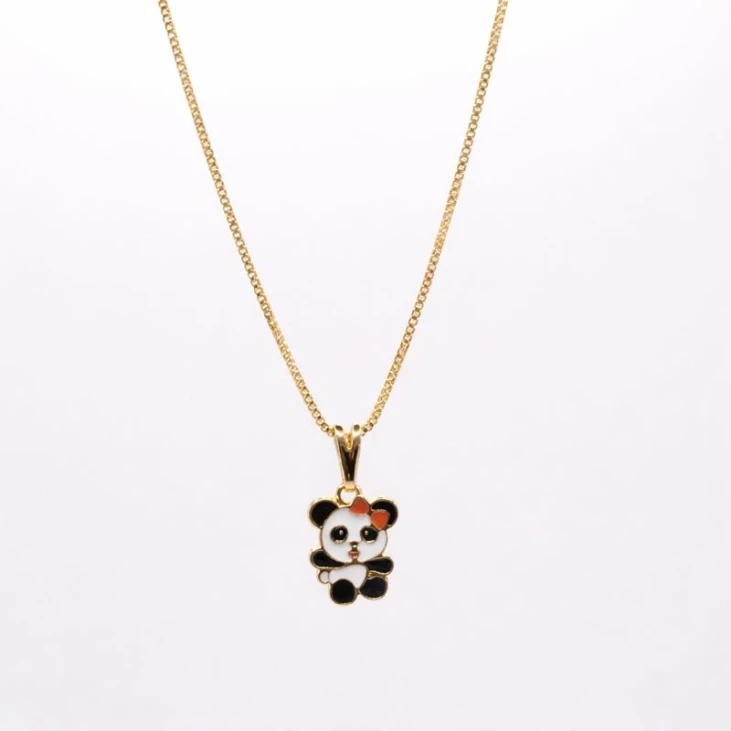 These gold-plated stud earrings feature an adorable panda adorned with a delicate red bow. Light and charming, they add a sweet and joyful touch to the everyday look of a child or young girl.
