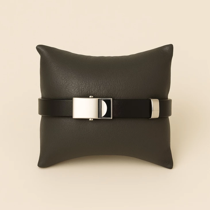 Men's bracelet crafted from black faux leather, featuring a stainless steel plate engraved with a lifeline motif. Stylish and meaningful, it fits perfectly with a length of 20.5 cm.