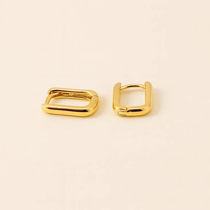 Minimalist and refined, these 1 cm rectangular gold-plated hoops are perfect for an elegant everyday look. Their polished finish beautifully catches the light.