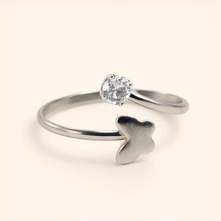 Delicate and feminine, this silver-tone open ring features a zircon-studded bow that beautifully catches the light. Adjustable and one size fits all, it comfortably fits any finger, adding a subtle touch of charm to your everyday look. Its base corresponds to Brazilian size L6, with a diameter of approximately 16.31 mm and a circumference of 51.02 mm,...