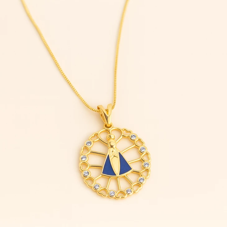 Awaken your elegance with this gold-plated medallion, where light dances along its rectangular edges and the open cross symbolizes spirituality and love.